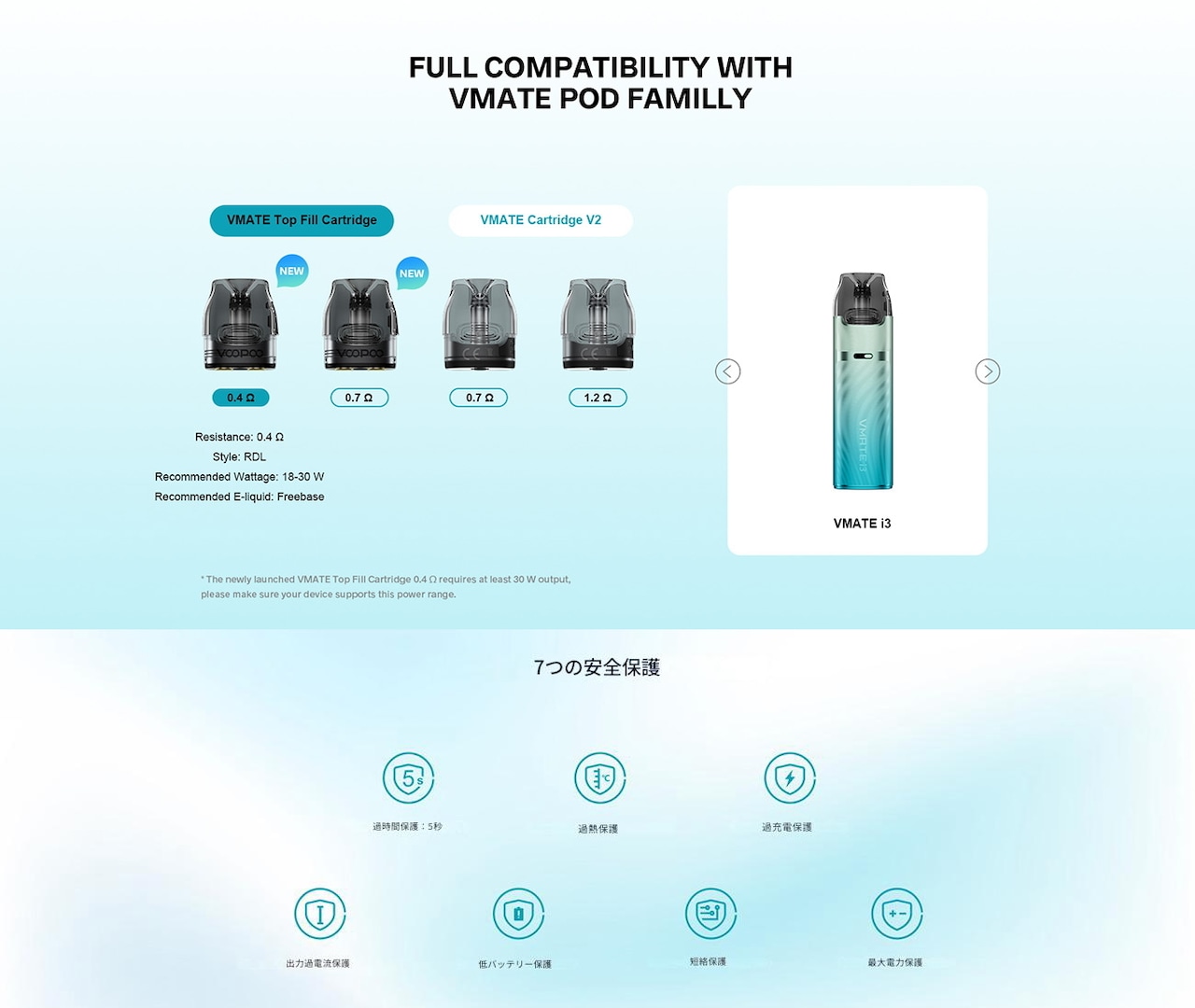 互換性のあるポッド: VMATEトップフィル & VMATE V2 カートリッジ