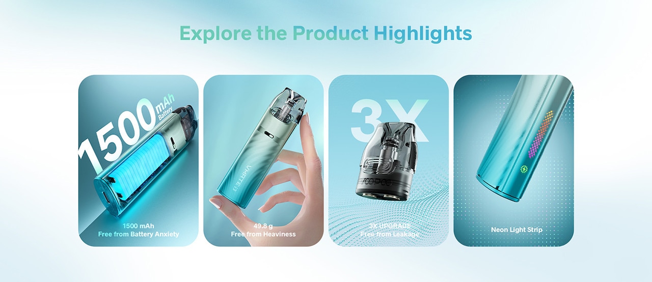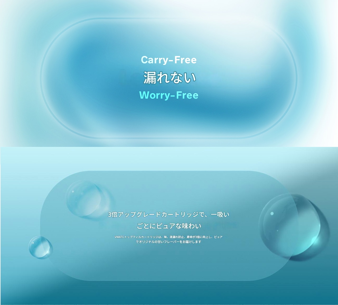 アップグレードされた3X VMATEトップフィルカートリッジを搭載し、風味の一貫性、耐リーク性、コイル寿命の3つの側面において3倍の向上を実現し、最大90mlのeリキッドを燃焼することなく持続します。