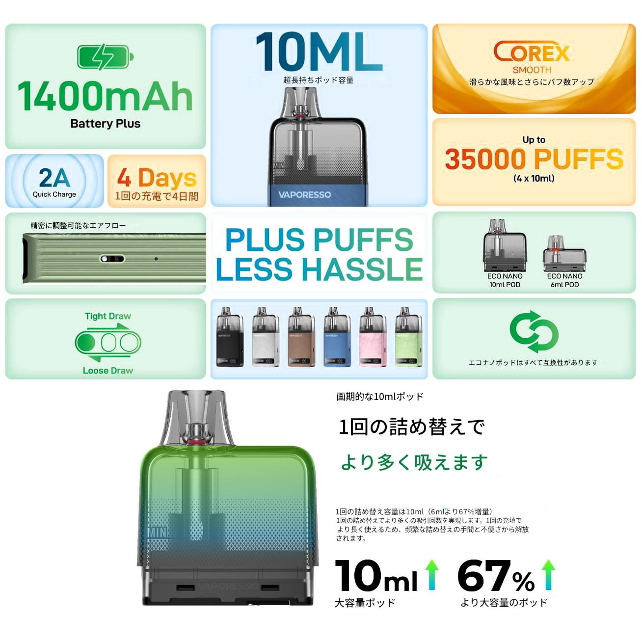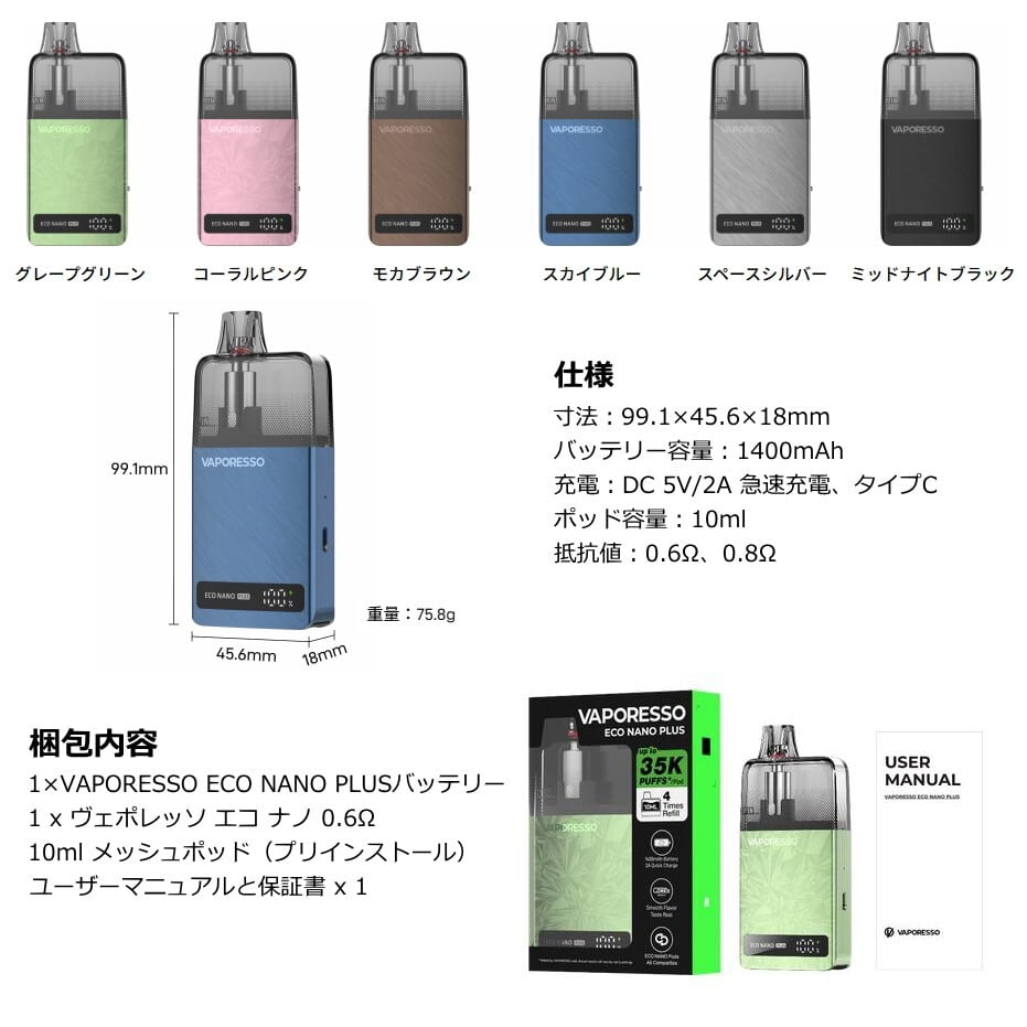 VAPORESSO ECO NANO PLUS エコナノプラス ポッド システム キット 1400mAh 10ml ベイパレッソ ベポレッソ ベイポレッソ