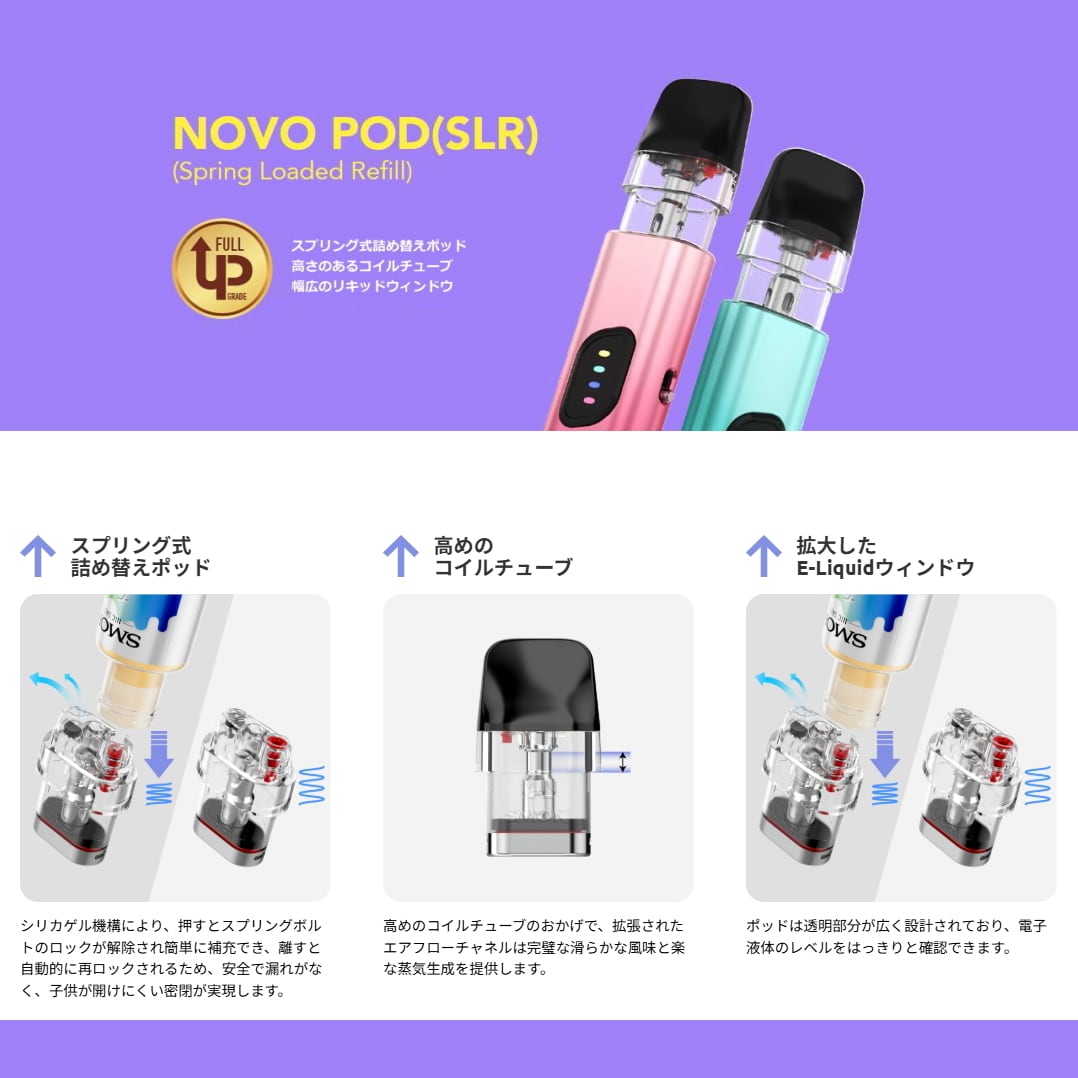 NOVO POD(SLR)シリーズはフレーバーの低減を強化し、クリーンで正確な味わいを実現します。