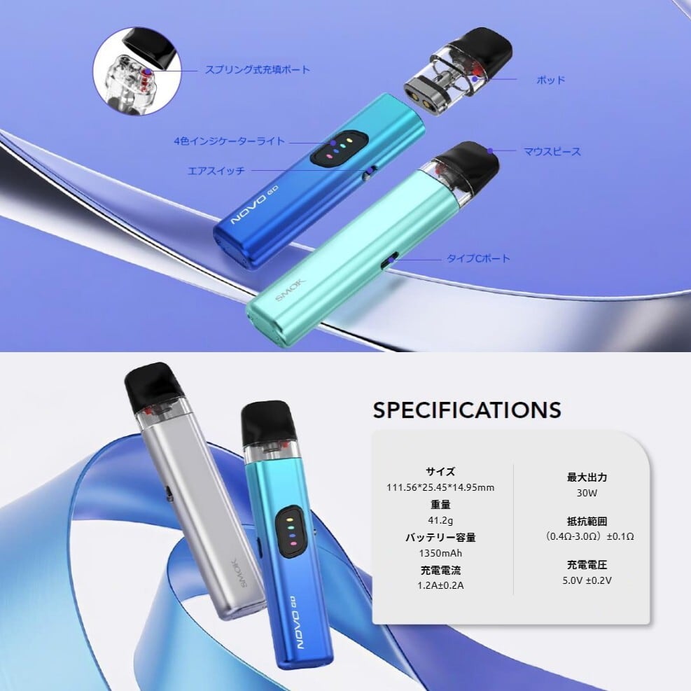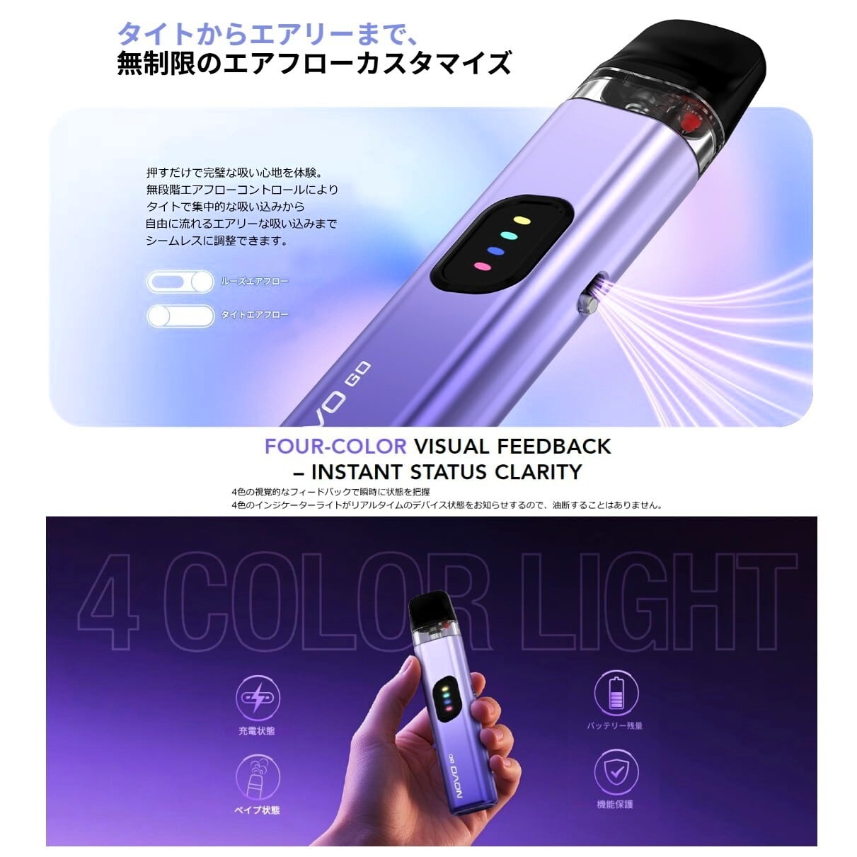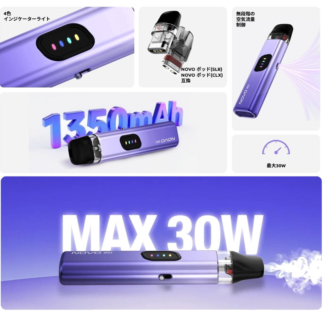 軽量で信頼性が高く、操作も簡単なNOVO GOは、シンプルさとパフォーマンスを重視するユーザーにとって理想的なポッドシステムです。