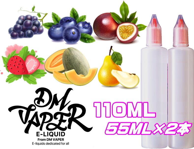 DMVAPER プレミアムブレンド E-リキッド 110ML 55ML×2本 VG60:PG40 ストロベリー ブルーベリー メロン パッションフルーツ グレープ 洋梨